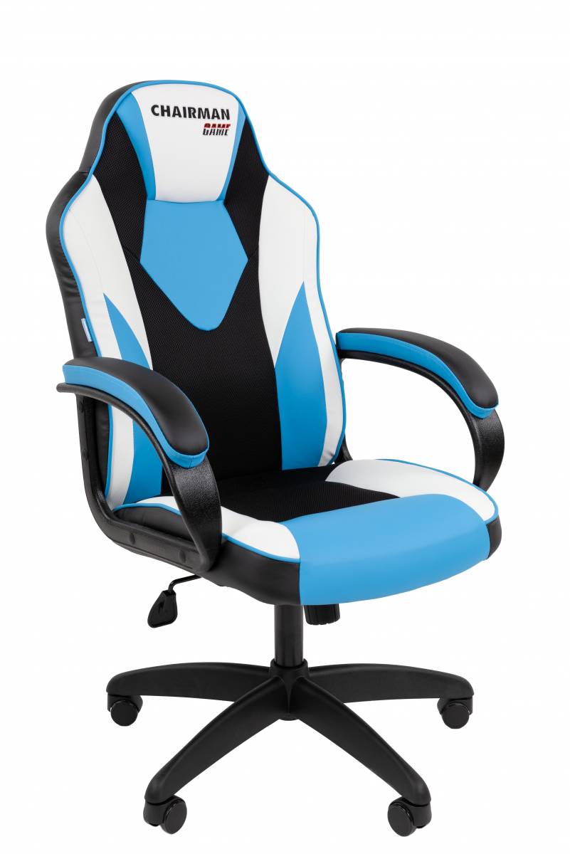 • Офисное кресло Chairman Game 17 Россия экокожа черный/голубой/белый