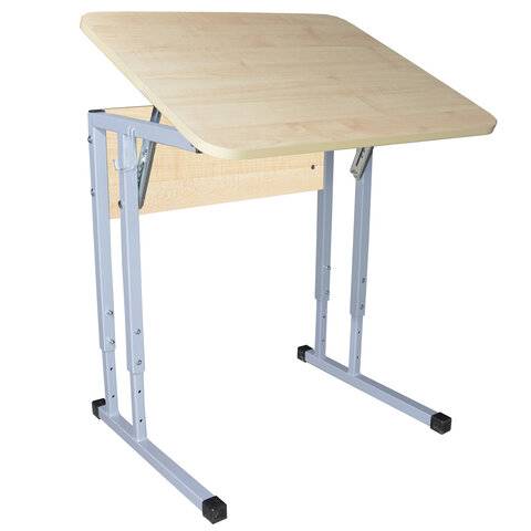 • Стол-парта 1-местный, регулируемый угол, СУТ.54-01, 600х500х640-780 мм, рост 4-6, серый каркас, ЛДСП клён